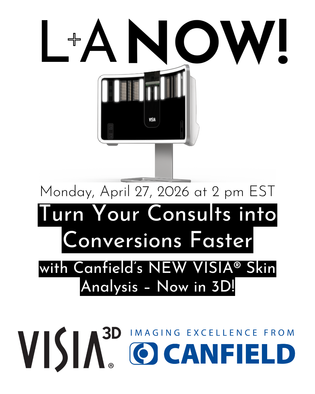 Sam Esposito, Canfield Scientific’s Product Management Director, joins us April 27th to provide expert demonstrations and insights about Canfield Scientific’s newly launched VISIA® 3D for masterful communication and effortless conversions.